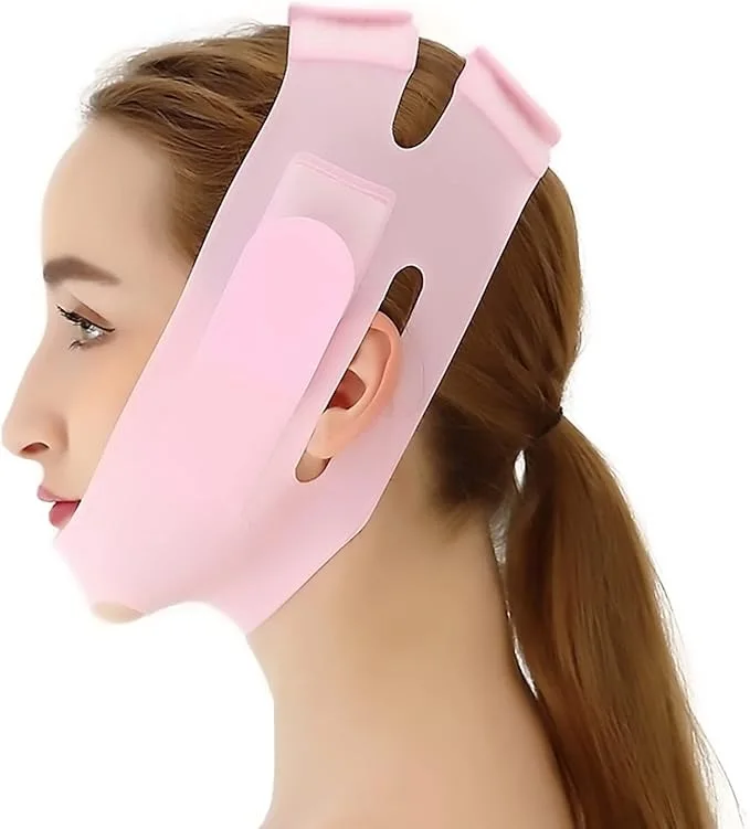 احصلي على ملامح وجه أكثر تحديدًا ومظهر مشدود بطريقة بسيطة ومريحة مع حزام شد الوجه المصنوع من السيليكون عالي الجودة.