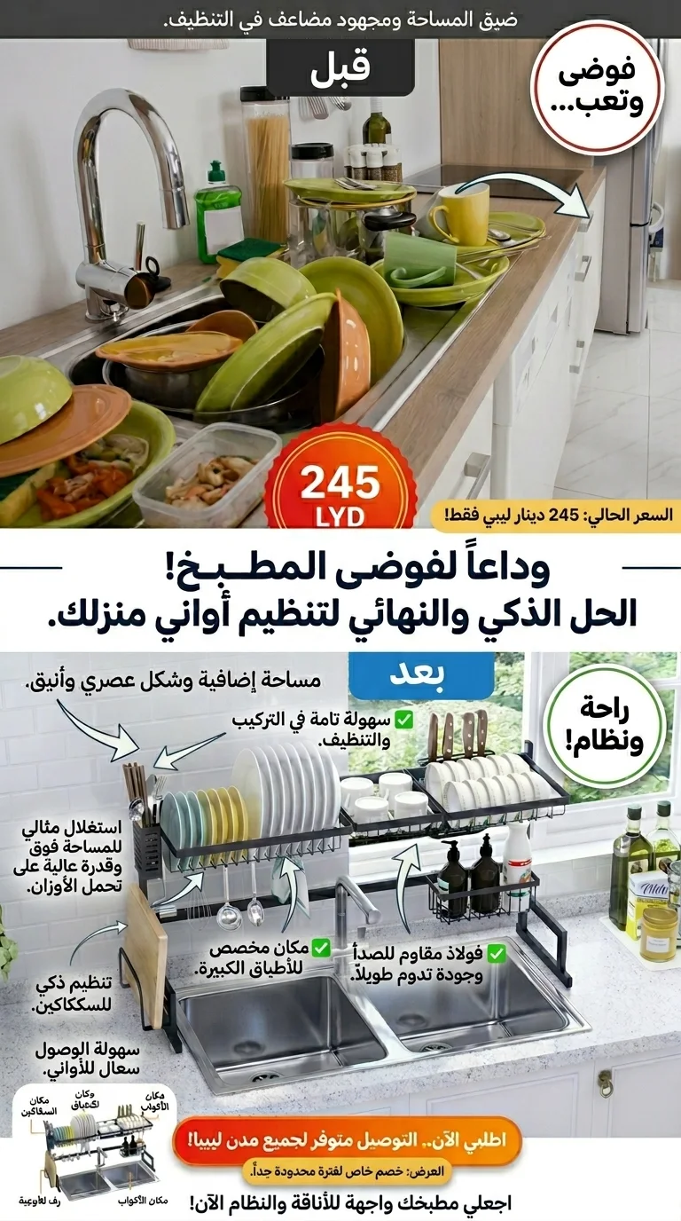 - 🧺 تنظيم ذكي: يوفر مساحة مثالية لترتيب الأطباق، الأكواب، الملاعق والسكاكين بسهولة