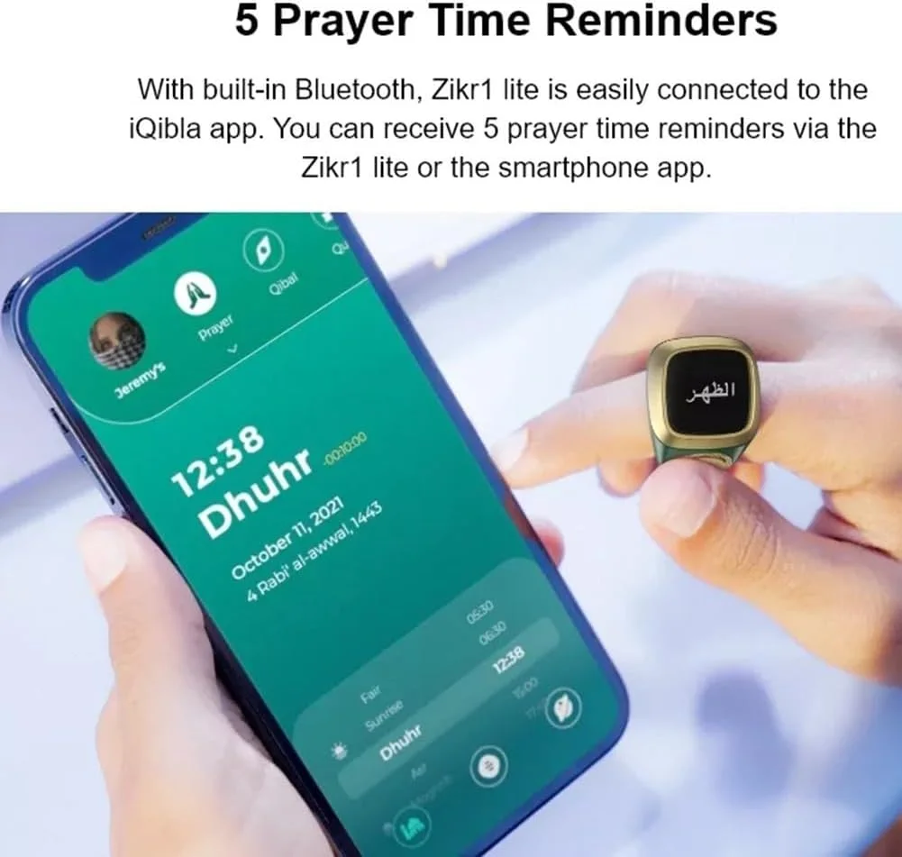 اجعل ذكرك أسهل وأكثر انتظامًا مع خاتم التسبيح الذكي المصمم ليكون رفيقك اليومي في العبادة. تصميم عصري وتقنية متطورة في حجم صغير، ليمنحك تجربة روحانية مريحة أينما كنت.