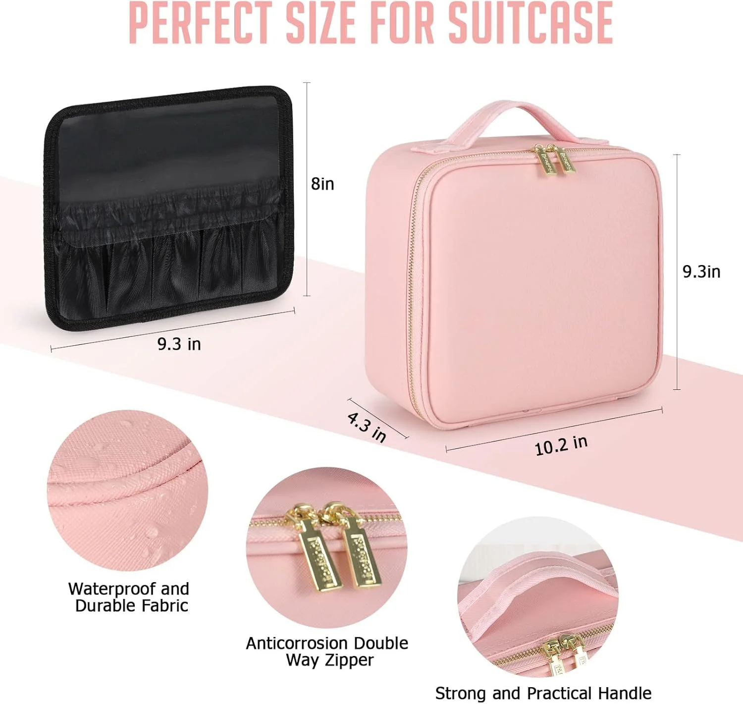 تحتوي على 6 فواصل إسفنجية قابلة للفصل من مادة EVA بالإضافة إلى مكان مخصص لفرش المكياج، لتصممي المساحة الداخلية حسب احتياجاتك.